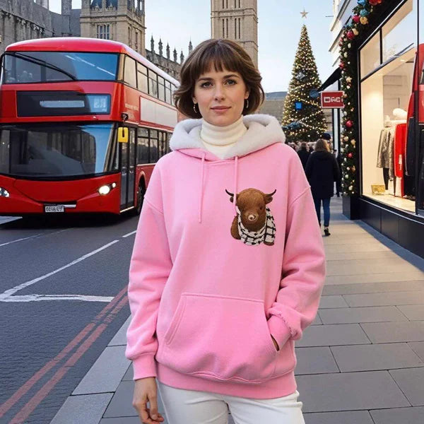 🎄🎅 WEIHNACHTSANGEBOT - 61% RABATT!! 🎁🦬Niedlicher Kapuzenpullover mit Fleece-Futter und Hochlandrindmotiv🎁