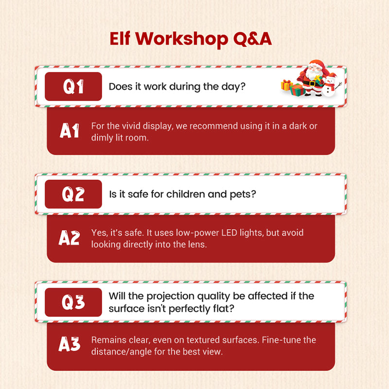 EINFACHE PLUG-AND-PLAY-INSTALLATION – Vergessen Sie komplizierte Installationen und verhedderte Lichterketten. Stellen Sie einfach den Projektor auf, schließen Sie ihn an und füllen Sie Ihren Raum sofort mit einer fantastischen Lichtshow. Weihnachtsdekoration war noch nie so einfach und schnell.