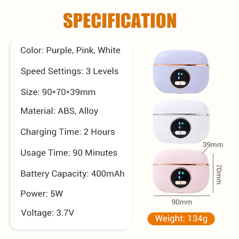 DREISTUFIGE GESCHWINDIGKEITSKONTROLLE: Verfügt über drei einstellbare Geschwindigkeitsstufen für verschiedene Nageltypen und -stärken. So erzielen Sie ein glattes, sauberes Finish auf weichen oder harten Nägeln und sorgen für ein angenehmes und effizientes Maniküre-Erlebnis.