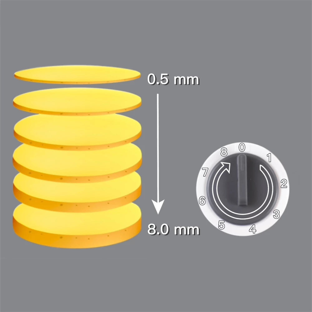 [Sicherer] Das einzigartige Design verhindert, dass Ihre Hände jemals in die Nähe der eingebauten Klingen kommen, was dieses Gerät zur sichersten Option für professionelles Schneiden macht.