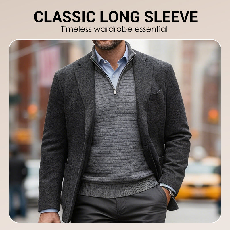 VIERTELREISSVERSCHLUSS-KRAGEN - Lässt sich leicht an unterschiedliche Looks und Komfortniveaus anpassen und bietet sowohl stilistische Vielseitigkeit als auch eine schnelle Temperaturregulierung für jede Situation, vom Büro bis zum entspannten Wochenendausflug.
