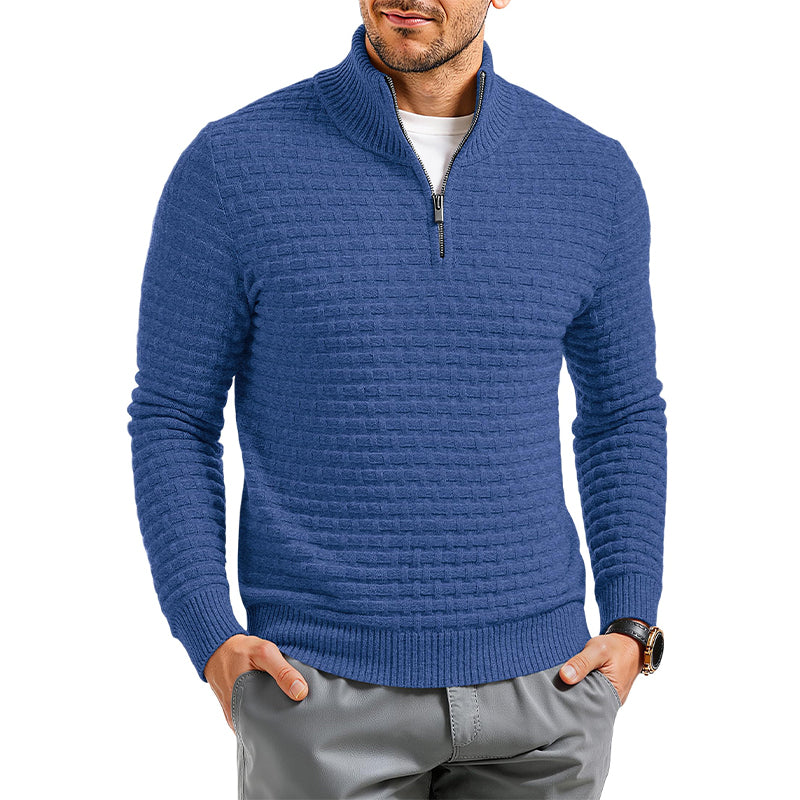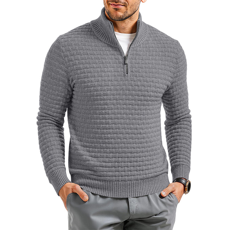 Lieferumfang: 1 x Herren-Strickpullover mit langen Ärmeln und Viertelreißverschluss