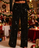 💖Letzter Tag im Angebot: 50 % Rabatt!🥰 Pailletten-Glitzerhose mit weitem Bein und elastischem Bund für Damen